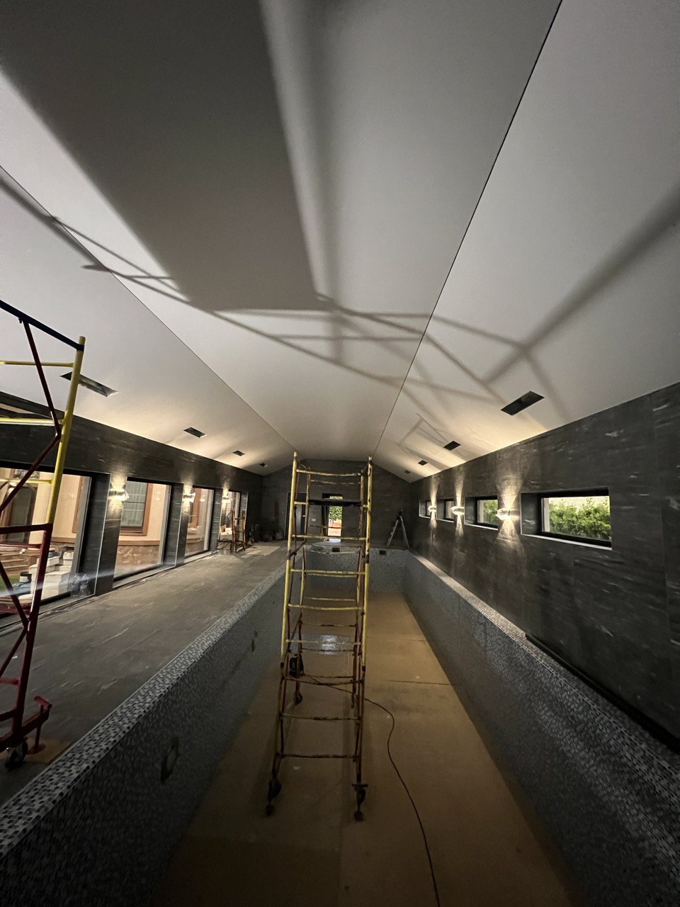 На натяжных потолках не скапливается статическое электричество, и не образуется конденсат, что очень важно для бассейнов и ванных комнат.