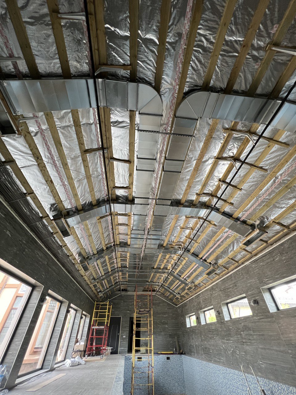 За натяжным потолком можно спрятать системы вентиляции, сигнализации, противопожарной безопасности, электропроводку. При необходимости, возможно применение дополнительных теплоизоляционных и звукоизоляционных материалов.